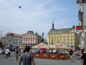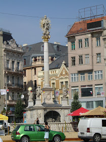 捷克廣場的特色之一就是:中間一定有個感恩柱或噴水池,下午開始廣場隨時都坐著喝啤酒聊天悠閒的人潮。
