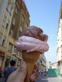 用歐元買的冰淇淋,店家不太爽......在捷克還是以捷克幣為主,歐元只有在布拉格比較好用,但建議還是捷克幣為主。
