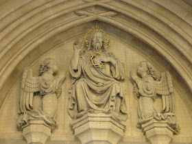 門上的雕像,避免鴿子破壞,外圍都會用網子保護