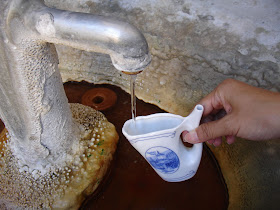 捷克相信溫泉飲用是有療效的,街上難販都可以賣到溫泉杯,可以買來喝溫泉當紀念品(99克朗),溫泉味道並不是粉好.....李先生只有喝了一些些,味道都不太一樣。