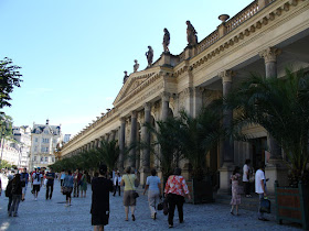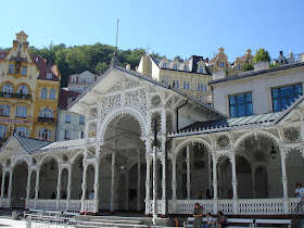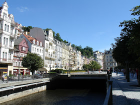 Karlovyvary是捷克第一個開發的溫泉小鎮,除了貴族之外名人雅士也喜歡徘徊於此如貝多芬、柴可夫斯基、巴哈,四周林林與華麗的建築形成美麗的景觀,主要建築沿著泰普拉小河(Tepla),商店街的東西也是高級商品居多,整個街道充滿貴氣,價格也很貴氣。