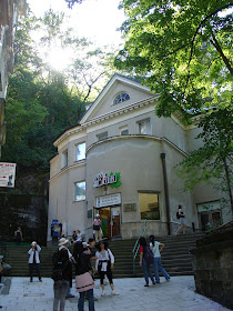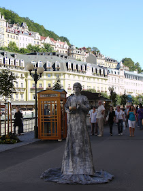 Karlovyvary規模極小約一天可以輕鬆步行,熱鬧街道就一條.....街上的街頭藝人靜止不動,投錢時會敲打手中的缽噹噹響。