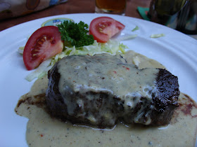 牛排佐黑楜椒醬,表面焦香裡面卻軟嫩的牛肉,肉汁滿滿,醬料也好吃。