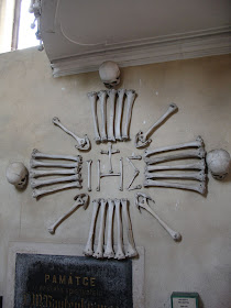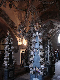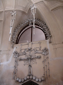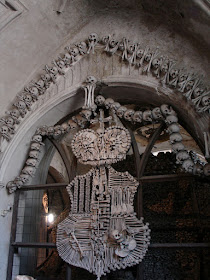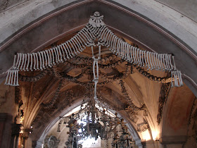 後來經歷了大溫疫,死亡人數急速增加,變成了葬骨場,直到奧地利貴族世家Schwarzenberg買了這個區域,並且出現了一位木匠師父Rint,他使用了約4萬人的骨頭,製作教堂內的各種聖物。
