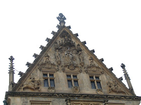 石頭之家:山字牆的豪宅,中央向外突出的窗戶,這座華廈是建立於15世紀胡斯戰爭之前,屬於製幣公會的普洛柯•卡魯帕所有,當他富裕到可以獲得貴族的頭銜之後,決定幫自已蓋一座豪宅襯托身份。