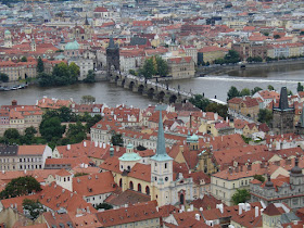鐘塔上布拉格景緻:熱門景點查理大橋,連接舊城區及小區。