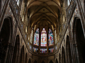 聖維塔大教堂,穿過第二廣場的通道,突然現身巨大的哥德式教堂,驚豔不已。高達97公尺,不知多少建築師為他奉獻心血。