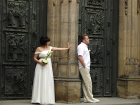 教堂外婚紗照,在布拉格幾乎每天都可以看到新人拍照,在充滿歷史的街道建築。