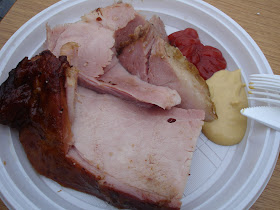 現烤煙燻火腿....稱重賣這一盤要200多年克郎,