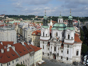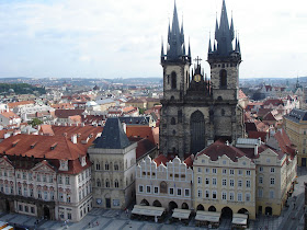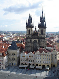 提恩教堂:廣場上尖聳的哥德鐘樓,注意看一下兩塔中間的三角形屋頂頂端,有一個純金的聖母像,外觀是哥德式裡面卻是巴洛克風格,望彌撒的時間才有開放(免費)。