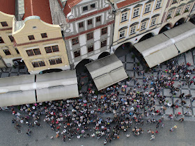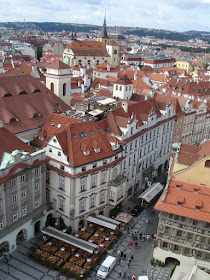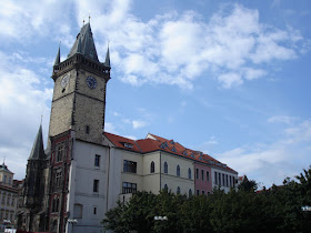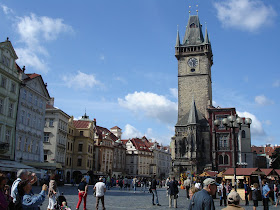 舊城區是布拉格最熱門的景點,暑假的旅遊旺季在舊城區可以看到滿滿的觀光客,各國語言都有,一到這裡就會先被觀光人潮嚇到,狹小的古城街道看不到地上,旅遊的心情就沒那麼悠閒了。所有的交通工具都沒有進入舊城區,最近的地鐵站大約都要走10鐘左右。跟李先生在布拉格的最後一天就是不斷的瓟上塔(火藥塔、天文鐘塔、舊城塔),拍照,鐵腿,但很開心的是今天終於放晴啦。