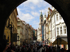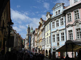 色彩豐富華麗巴洛克風格的街道,盡頭藍色鐘塔是小區廣場的地標:聖尼古拉教堂