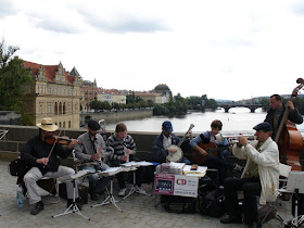 橋上的街頭藝人,展現各種特色。