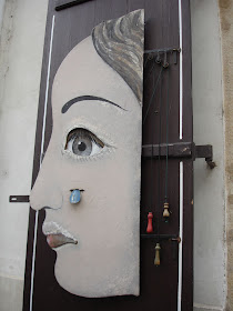 木偶傀儡店家門口,左右門片上有趣的裝飾