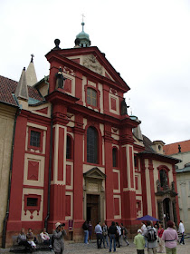 舊皇宮參觀的出口旁就是聖喬治大教堂, 磚紅色的建築,這座羅馬大會堂風格的教堂,被視為捷克最美麗、保存最完整的羅馬建築。