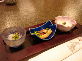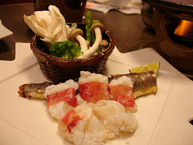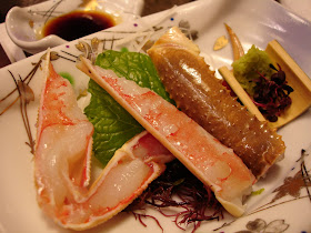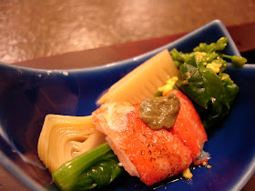 前菜:生螃蟹、春筍油菜花及蟹肉、山藥豆腐蟹膏。蟹肉甜完全沒有腥味....清爽好吃。