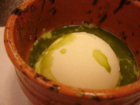 甜點抹茶冰淇淋:桌邊現泡的抹茶倒入香草冰淇淋,茶香加香草香,甜澀味中和,好吃。