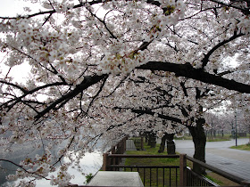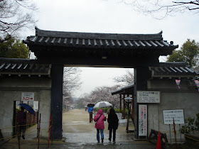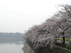 大阪城護河外圍一整片吉野櫻,跟名古屋成一樣,只可惜今天天氣不佳飄點雨.....大家要撐傘又要拍照真難取捨。
