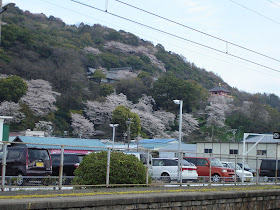 JR紀三井寺駅一下車就可以看到滿座山的櫻山及紀三井寺。