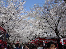 神社旁公園滿滿的櫻花跟攤販,熱鬧極了。