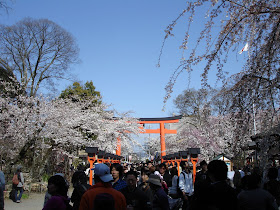 昨天走太多路,今天決定辦公車一日券,能坐車就坐車要等就等...要讓雙腳休息一下....從車站走到平野神社一路平靜,一度以為走錯路,一到平野神社,熱鬧的人潮就出現啦。