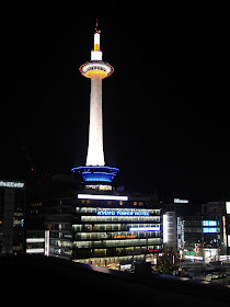 吃飽喝足後便在京都車站逛逛,可完整拍到京都塔.....來過這麼多次第一次逛京都車站耶.....。