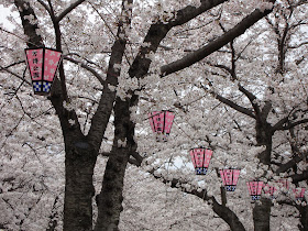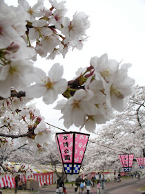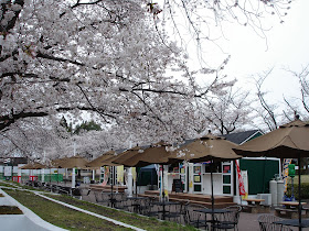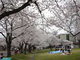 園內好幾片大草地及櫻花,大家隨地而坐。