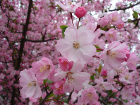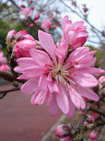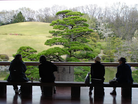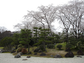 日式庭園的櫻花也滿開了,下面白色的小花也很美。