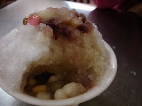 綜合圓仔冰(30元),現煮熱呼呼的圓仔被包冰包圍,口感軟Q,糖水清爽不膩,2個人一碗就足夠了。