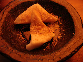 飯後甜點:日式麻薯淋黑糖漿及黃豆粉。