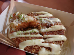 幸ㄝ日式可樂餅,網路上查到的訊息是只賣五六日,沒想到星期四也有開買,就在萬國牛排的正對面,原味馬鈴薯可樂餅(35元),內餡鬆軟外皮酥脆不油,現吃熱呼呼的,還不錯。半路買的奶茶不好喝。