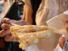 米血、高雄特扁的黑輪、鴨腸,南部的味道偏甜.....。半途買的鳳梨冰也不好喝。