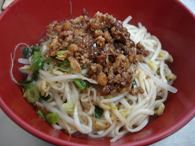 乾麵肉燥香,麵條軟硬煮的剛剛好,不錯吃。店家的辣椒醬有辣。