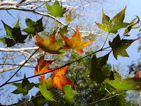 停車場變色的落羽松及楓葉,走完吊橋步道約三點,因為人潮比到時多了二三倍怕下山會塞車,所以就沒有去瀑布區,待下次櫻花開時(停車場後的草皮上種了不少山櫻花),改天再來走走。