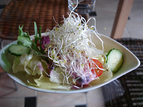 莎拉:簡單的生菜淋上藍莓優格醬,清爽好吃,可以吃到不少[醬料裡粒粒的藍莓。