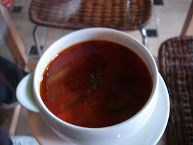 蕃茄蔬菜湯,紅蘿蔔、芹菜、小黃瓜、蕃茄,熱呼呼的不錯喝。