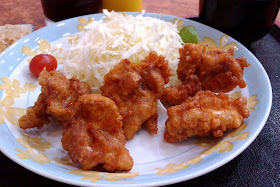 炸雞定食(200元)的主餐,日式炸雞皮薄肉汁多,滴上檸檬汁就很好吃囉。