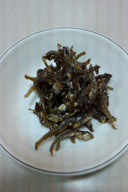 泡菜鍋附贈白飯一碗以及4盤小菜:泡式、涼拌豆芽、小魚干、韓式蘿蔔