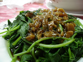 地瓜葉(80元),湯過的地瓜葉淋上魯肉汁。