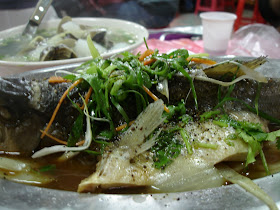 蒸魚(250元)......魚頭跟魚尾的鱗片沒有剮乾淨,山上還是適合吃肉。