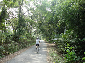 後半段的產業道路路段,沿途種了柚子樹,兩旁綠蔭,不小心撞到一隻蚯蚓sorry,但上坡路段不少,坡度也陡,我騎起來吃力,還有一段上坡失敗用牽車的,李先生騎的很開心。