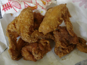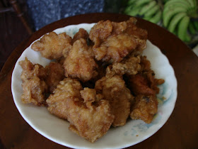 炸雞塊,炸雞略醃帶淡淡香味,表皮薄而脆,真的算是好吃又便宜,難怪生意那麼好......,因為老闆娘根本忙不過來,所以想吃靠自已夾比較快。