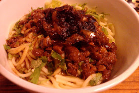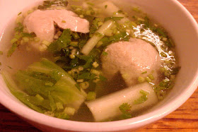 乾麵(55元)香噴噴的油蔥跟肉燥,很誘人的香味,但可能是習慣清淡口味,總覺得店家味道變重變鹹......李先生還加點貢丸湯平衡一下。