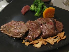 和風牛肉:肉質較有咬勁肉汁較多,肉汁淡淡醬油味.....也是甜的。
