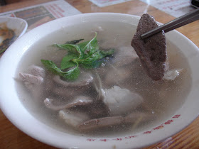招牌湯(60元)有肉片,粉腸加上豬肝,湯頭簡單加上九層塔提味,用料很實在新鮮,豬肝粉嫩好吃,今天的美味。
