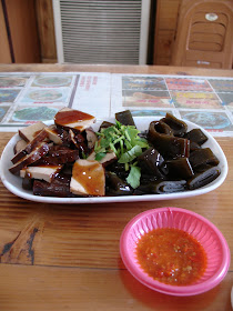 小菜豆干、海帶(各20元),店家叮嚀辣椒有辣請適量,真的夠味的辣椒醬。小菜沒有什麼特別。