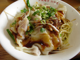 李小胖點的餛飩乾麵,味道也是一般般,餛飩還是湯的好,乾的吃起來太乾了。