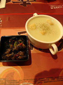 無限供應的濃湯以蘿宋湯還有小菜(酸洋蔥、辣拌韭菜、還有酸菜)味道都不錯。
