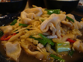 薑絲炒大腸:在新竹吃慣了嗆酸的客家大腸,這一盤醋酸味道略顯不足,但在斗六的友人覺得味道足夠,每個人偏好還是不同。