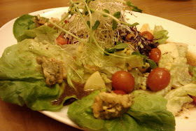 甘貝莎拉,甘貝包裏紫穌油炸後以生菜包住入口。新菜色